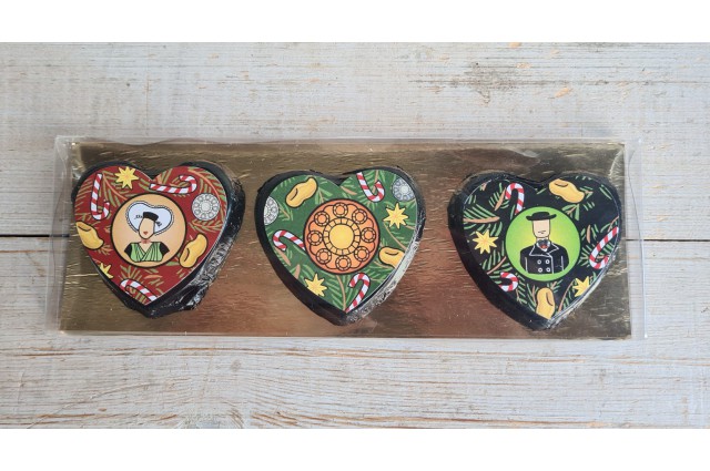 Hartjes van chocolade in blister Drie chocolade hartjes van 15 gram melkchocolade per hartje. Er zitten 3 hartjes in een...