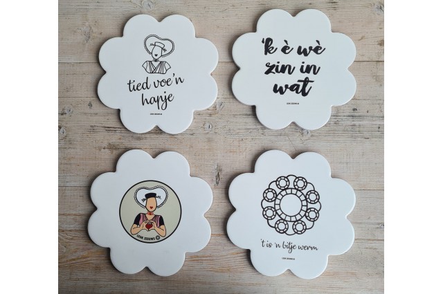 In winkelwagen keukenservies Onderzetter keramiek knop Onderzetter van keramiek. Diameter 17cm. Met de afbeelding van een zeeuwse knop en de tekst... € 5,95