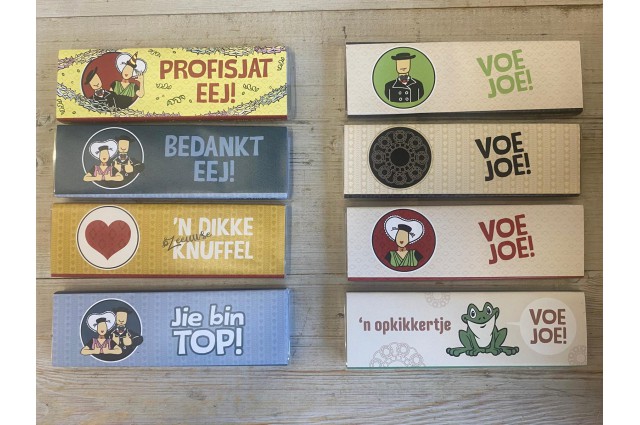 In winkelwagen nieuwe-producten Chocoladerepen Lekkere chocoladerepen met de keuze uit twee afbeeldingen. Op de ene staan de boer en boerin... € 3,95