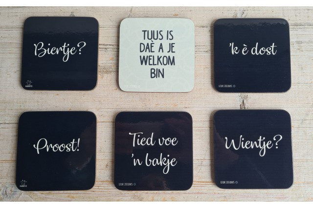 In winkelwagen onderzettersdienbladen Onderzetters met Zeeuwse tekst Leuke onderzetters met kurk aan de onderkant. Er zijn zes verschillende teksten. Biertje?... € 1,95