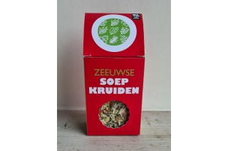 Een doosje in bijpassende kleuren met het kookboek gevuld met lekkere kruiden voor door de soep!