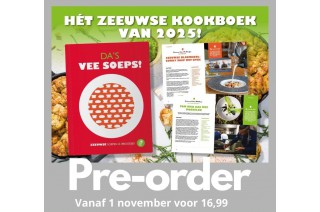 Begin november brengt Leuk Zeeuws samen met uitgeverij Paard van Troje een kookboek uit genaamd Da’s vee soeps! met lekkere recepten van soep en broodjes. Er hebben allemaal Zeeuwse koks, scholen en bedrijven aan meegewerkt en zij hebben de recepten met prachtige foto’s aangeleverd. Het belooft een prachtig boek te worden met een stoffen kaft. Een gedeelte van de opbrengst van het kookboek zal gebruikt worden voor een evenement op 6 december voor mensen die het minder breed hebben. Het aantal bladzijden is 112. Voor bedrijven kunnen we het kookboek voorzien van een persoonlijke wikkel of boekenlegger met eigen logo of tekst. Voor grotere aantallen hanteren we een staffelkorting. Neem hiervoor contact op via info@leukzeeuws.nl.