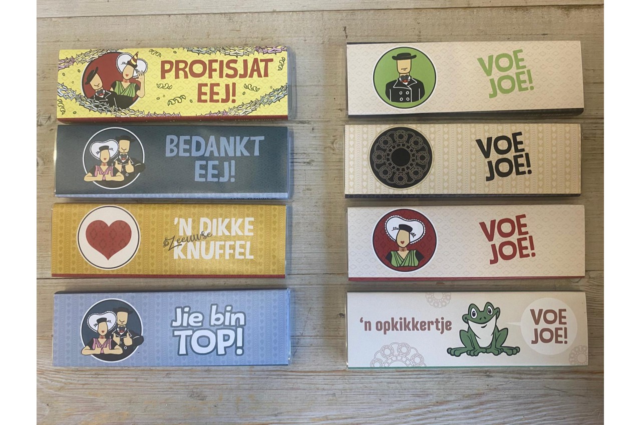 Lekkere repen chocolade met een leuke wikkel voor verschillende gelegenheden.