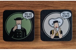 Een leuke onderzetter met de tekst Tied voe een bakje. Keuze uit de boer of boerin.