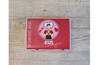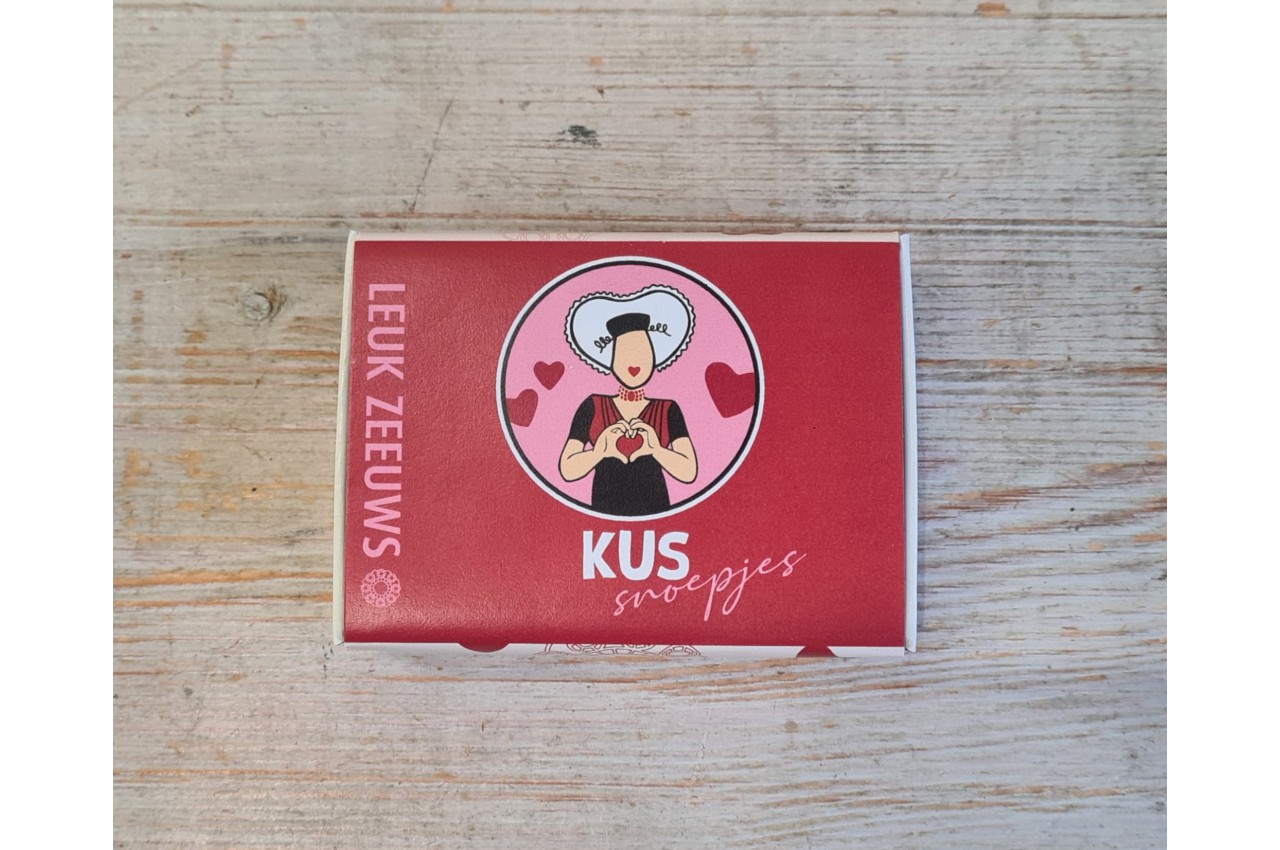 Drie rolletjes pepermunt in een roze verpakking met de afbeelding van een boerin met een hartje.
