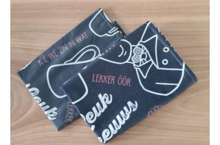 100% katoen, gemaakt van schortenbont en badstof. Merk Leuk Zeeuws.